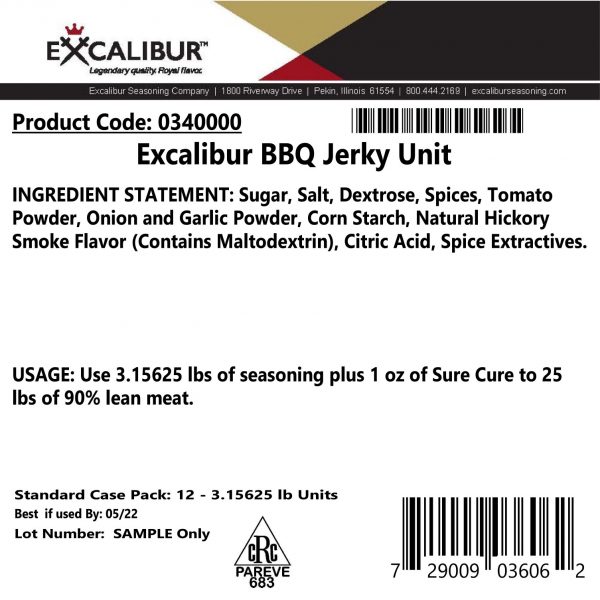 Excalibur BBQ Jerky Unit 3.16# Bag