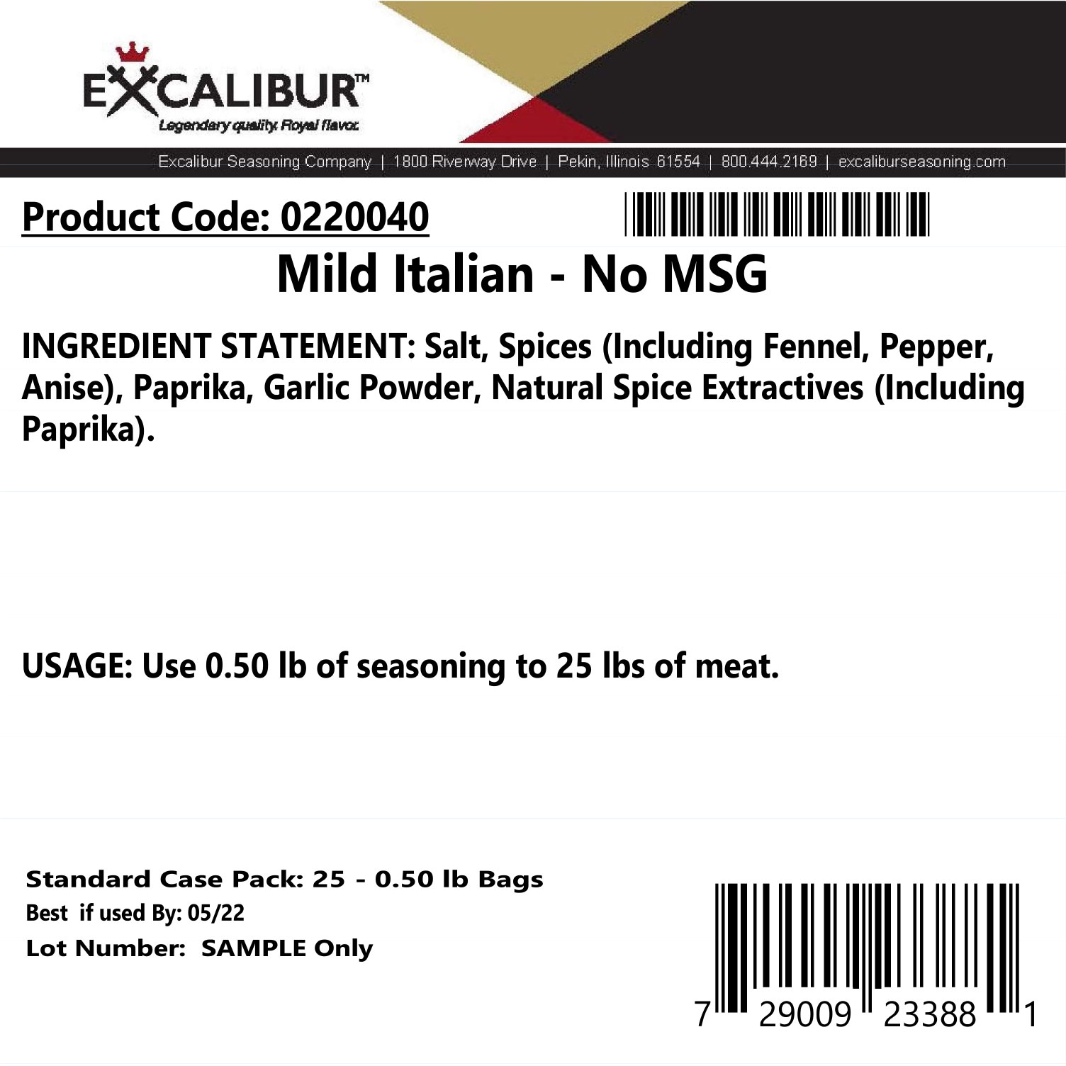 / Mild Italian Sausage No MSG Bag
